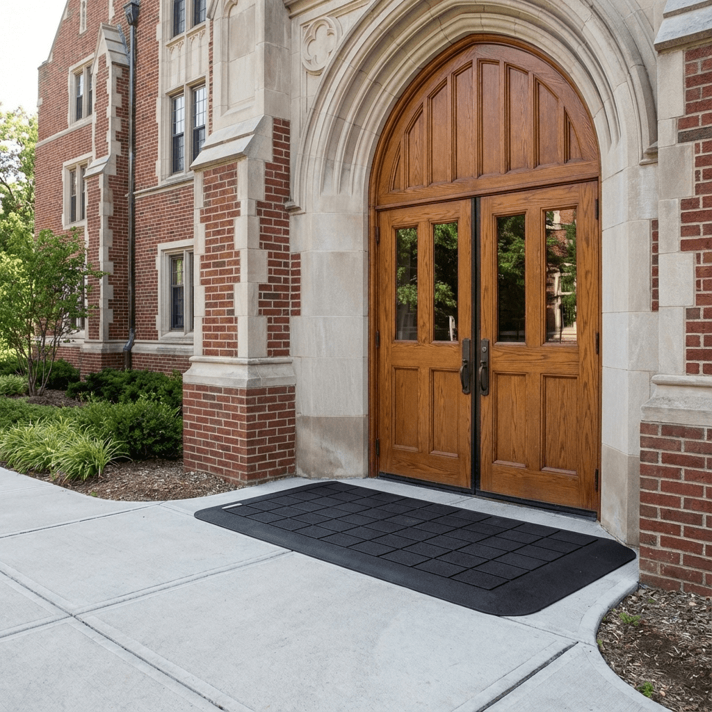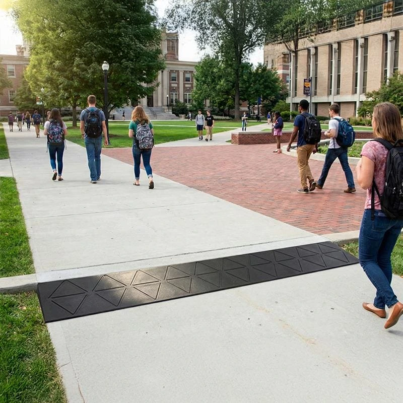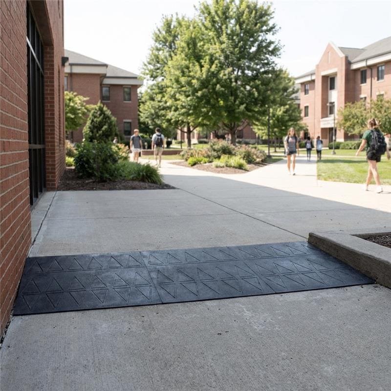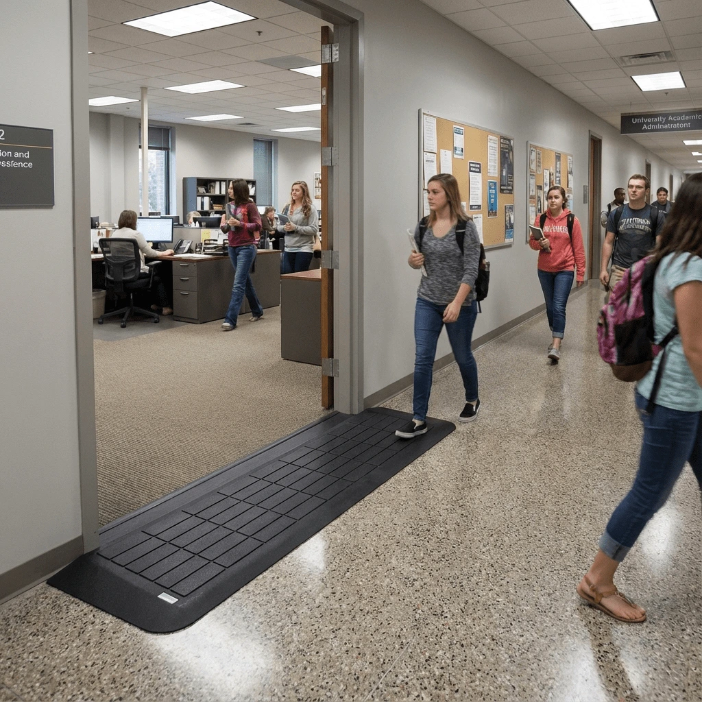 It is essential for all students, faculty and any visitors using wheelchairs or a walking aid to navigate all areas of school and university buildings, such as classrooms, laboratories, and administrative offices, in addition to just the main entrances. Floor transitions of 1–2 inches, raised thresholds, or uneven transitions between areas can present serious mobility challenges if you are using any type of mobility aid. Various types of transition ramps are available to provide a seamless connection from non-accessible areas to accessible areas of the educational institution, which creates trip hazards and improves mobility through the academic environment. SafePath ramps can help provide ADA-compliant continuous pathways throughout educational institutions (from lecture halls to specialized laboratories), as they are durable, slip-resistant and designed to provide a constant source of safety and comfort for occupants in a high-use educational setting.