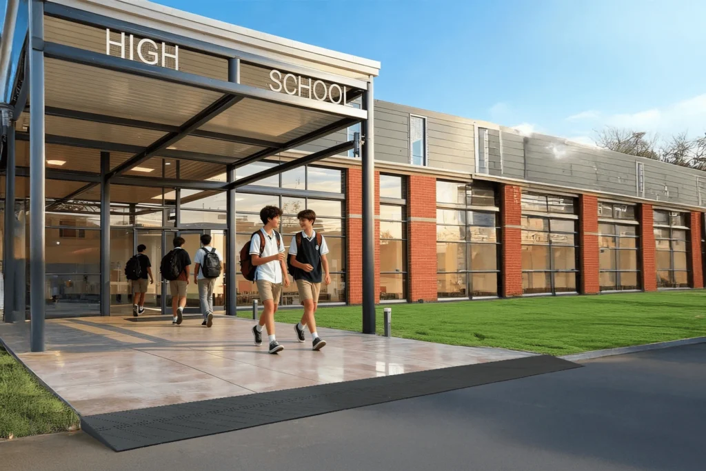 It is essential for schools and universities to provide each student, employee, and visitor with a safe and dignified approach into school. Schools and universities typically have main entrance points at the entrances of their campus areas, where many individuals will be arriving on school property; therefore, accessibility is even more crucial at those locations. SafePath landing ramp systems provide accessible pathways to the primary entrance points by creating a stable, smooth walkway from parking areas, drop-off locations, and pedestrian walkways. They are designed to provide a slip-resistant surface and slope in accordance with the Americans with Disabilities Act (ADA) and can serve as a means for schools and universities to comply with various legal requirements while creating an inclusive environment for all. As they are built to be heavy-duty and withstand the wear-and-tear of daily use, they will provide a stable, long-lasting option for educational institutions looking to provide equal access to educational opportunities for all individuals.